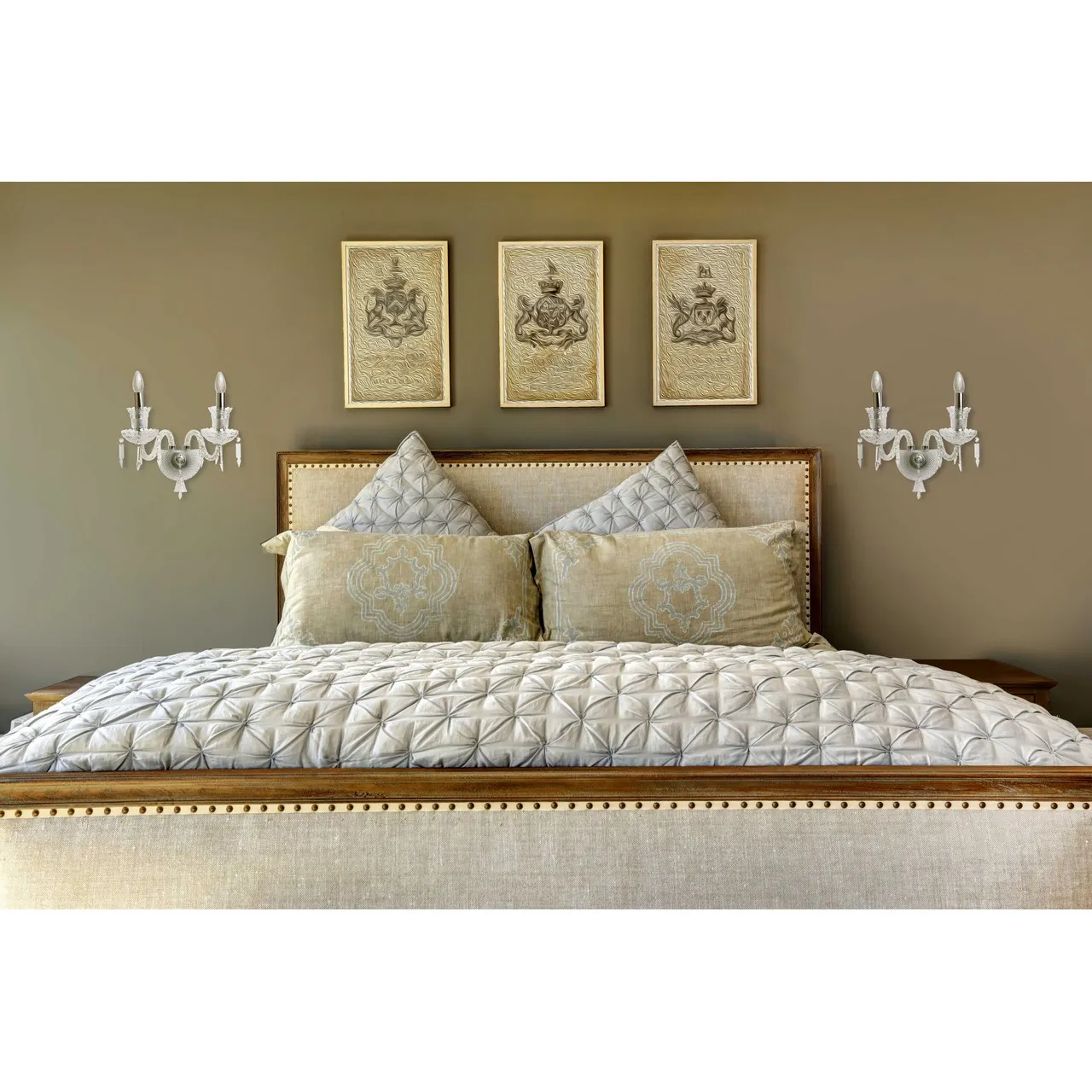 Металлическое основание цвета хрома, декоративные элементы из стекла и прозрачного хрусталя