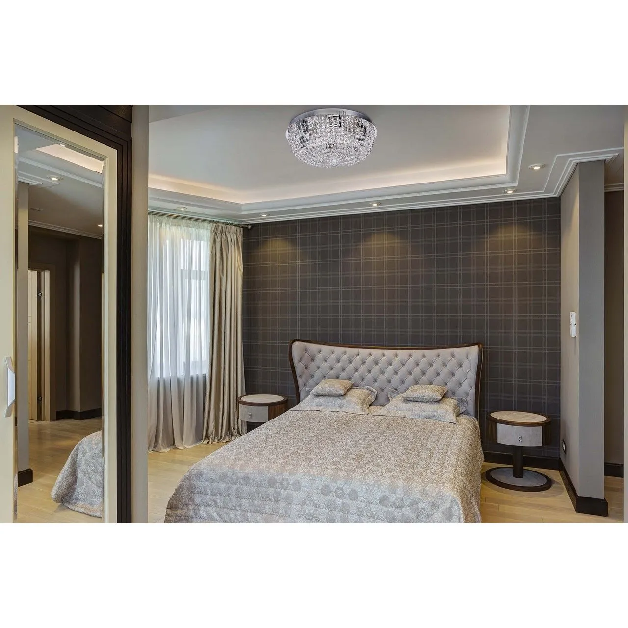Металлическое основание цвета хрома, декоративные элементы из хрустального стекла.