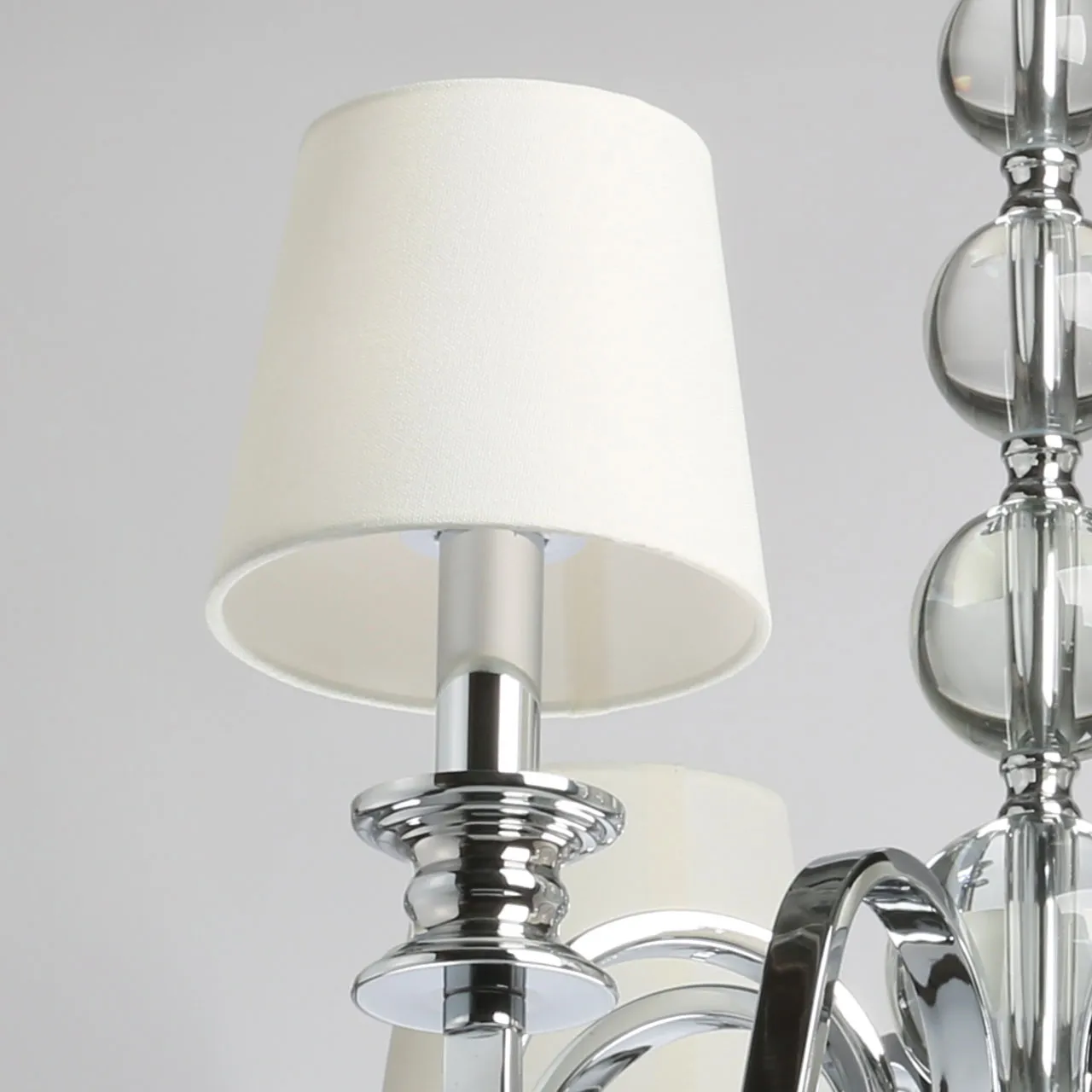 Основание/ металл/ хром Абажуры/ акрил, текстиль/ прозрачный, белый Декор/ хрусталь/ прозрачный