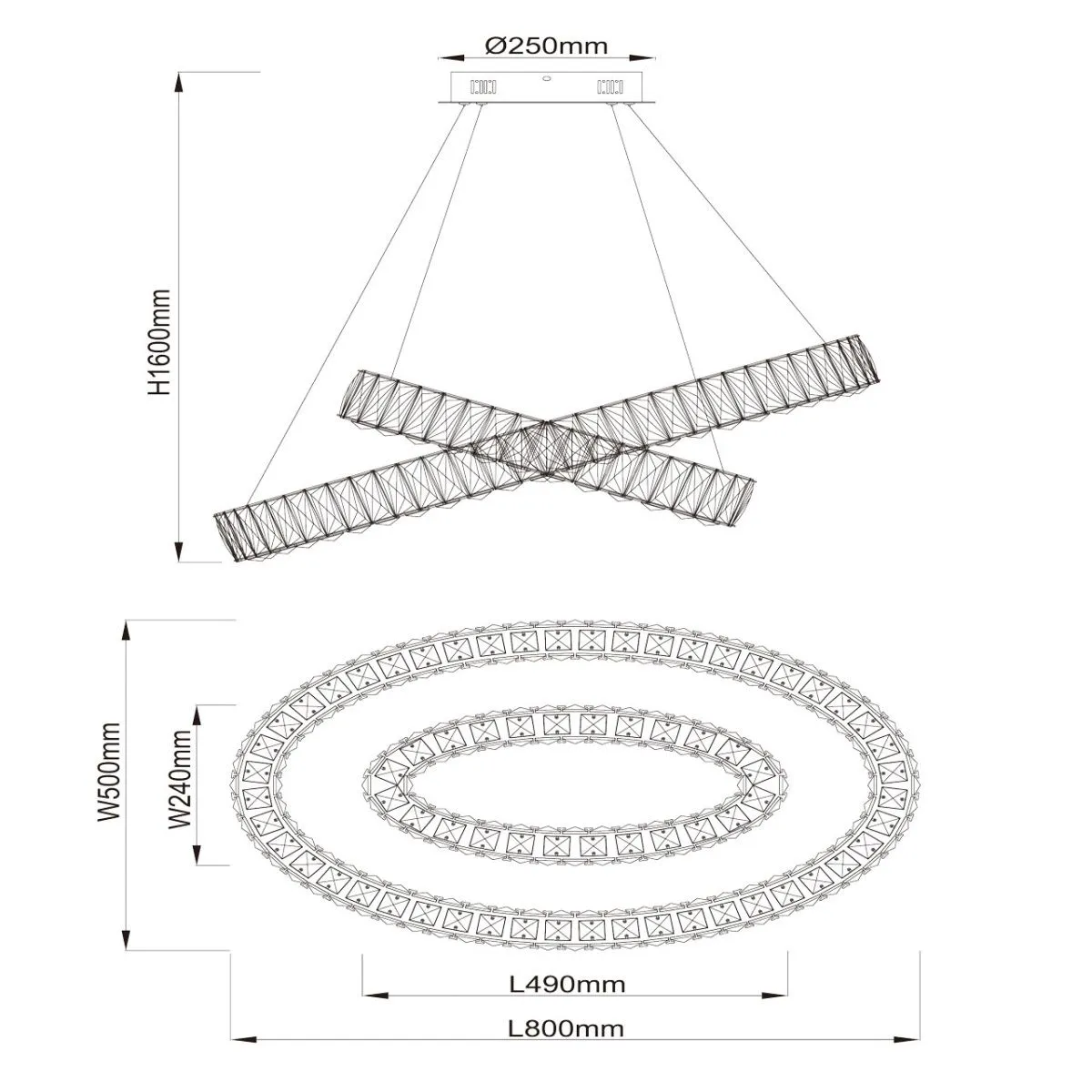 Металлическое основание цвета хрома, декоративные элементы из высококачественного хрусталя
